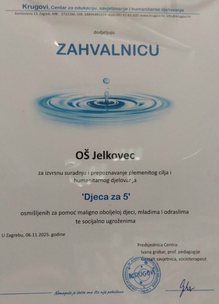 Kada je naša ravnateljica primila poziv za sudjelovanje u humanitarnoj akciji „Djeca za 5“ , nije čekala ni sekunde – odmah je pozvala profesore dobrovoljce da joj se jave. „Djeca za 5“ humanitarna je akcija skupljanja igračaka za djecu oboljelu od malignih bolesti iz socijalno ugroženih obitelji koju je organizirao Centar Krugovi.