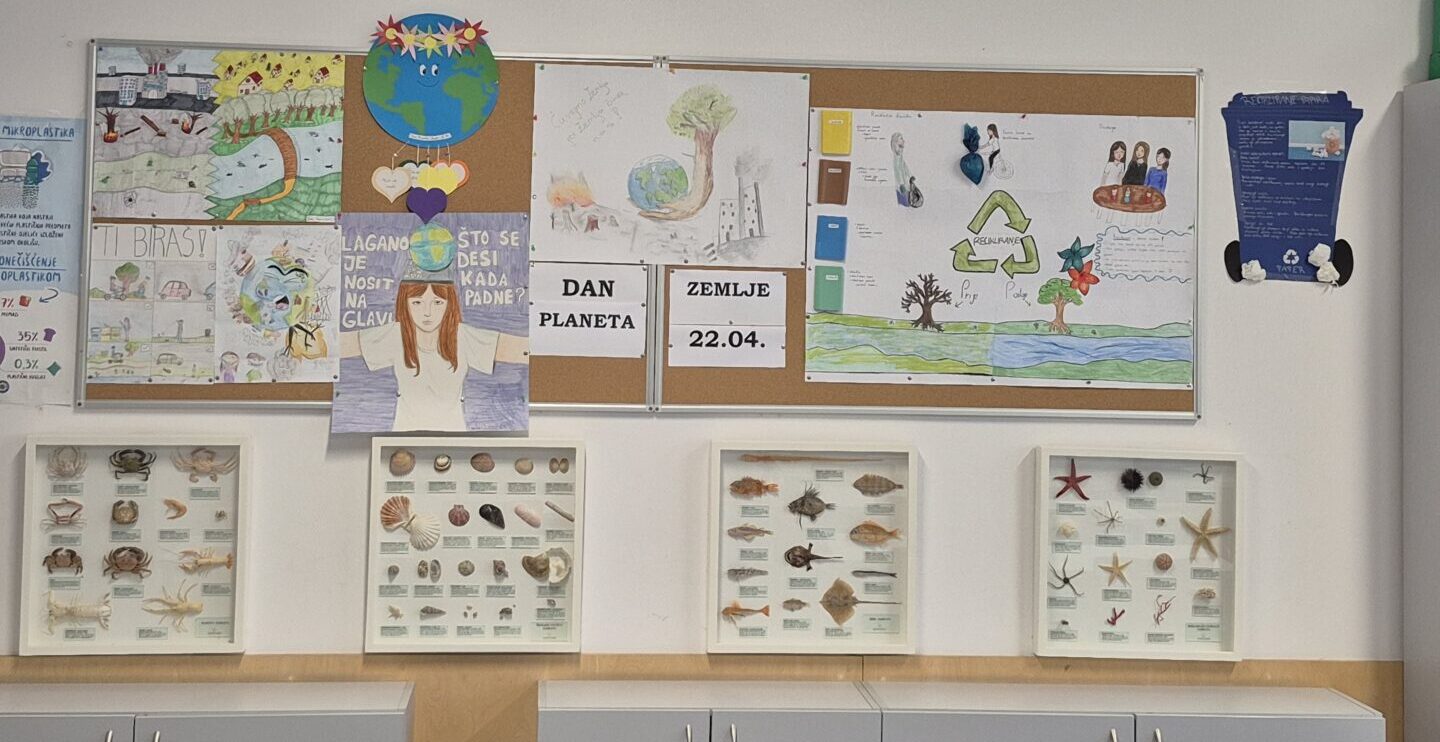 Najbolji radovi učenika izloženi su u učionici biologije povodom dana planeta Zemlje, 22.04.